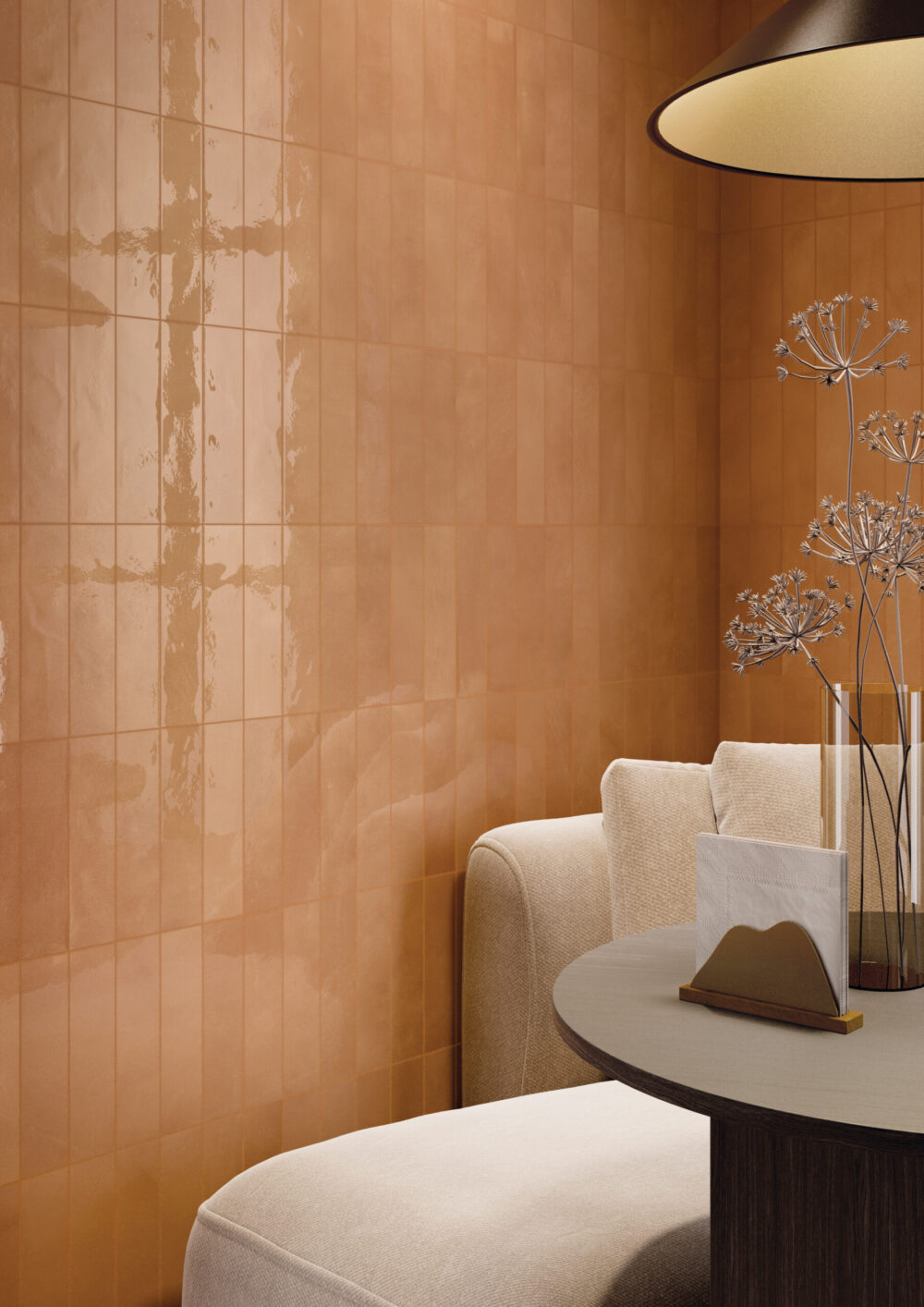 Terrakota plaatide loomulik karakter tuleb kõige paremini esile soojat tooni vuugiga. Pruunid ja roostekarva toonid rõhutavad mahedat, Vahemere stiilist inspireeritud atmosfääri. Beež võib pinda veidi helendada, kuid valge vuuk kipub terrakota kõrval liiga kontrastne ja rahutu tunduma.