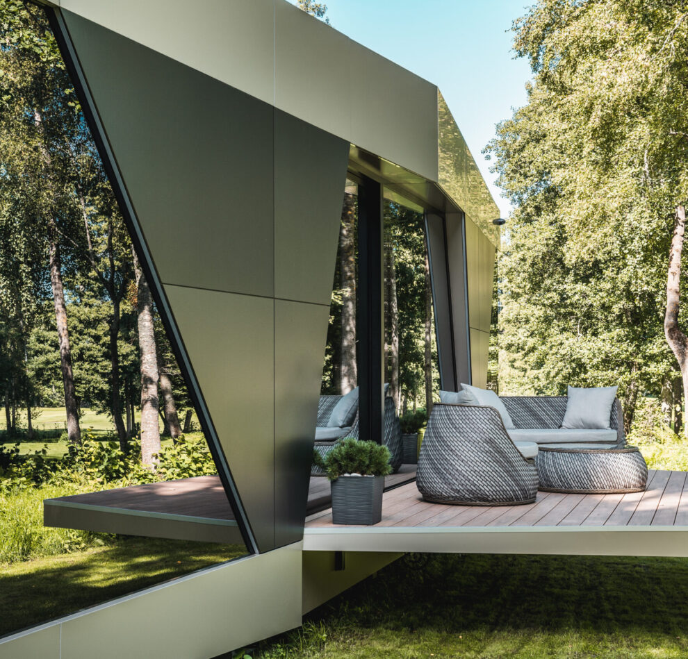 Fassaad on tehtud Interstudio poolt esindatud fassaaditootja Trespa paneelidega: Trespa® Meteon®; Trespa® Meteon® Metallics
